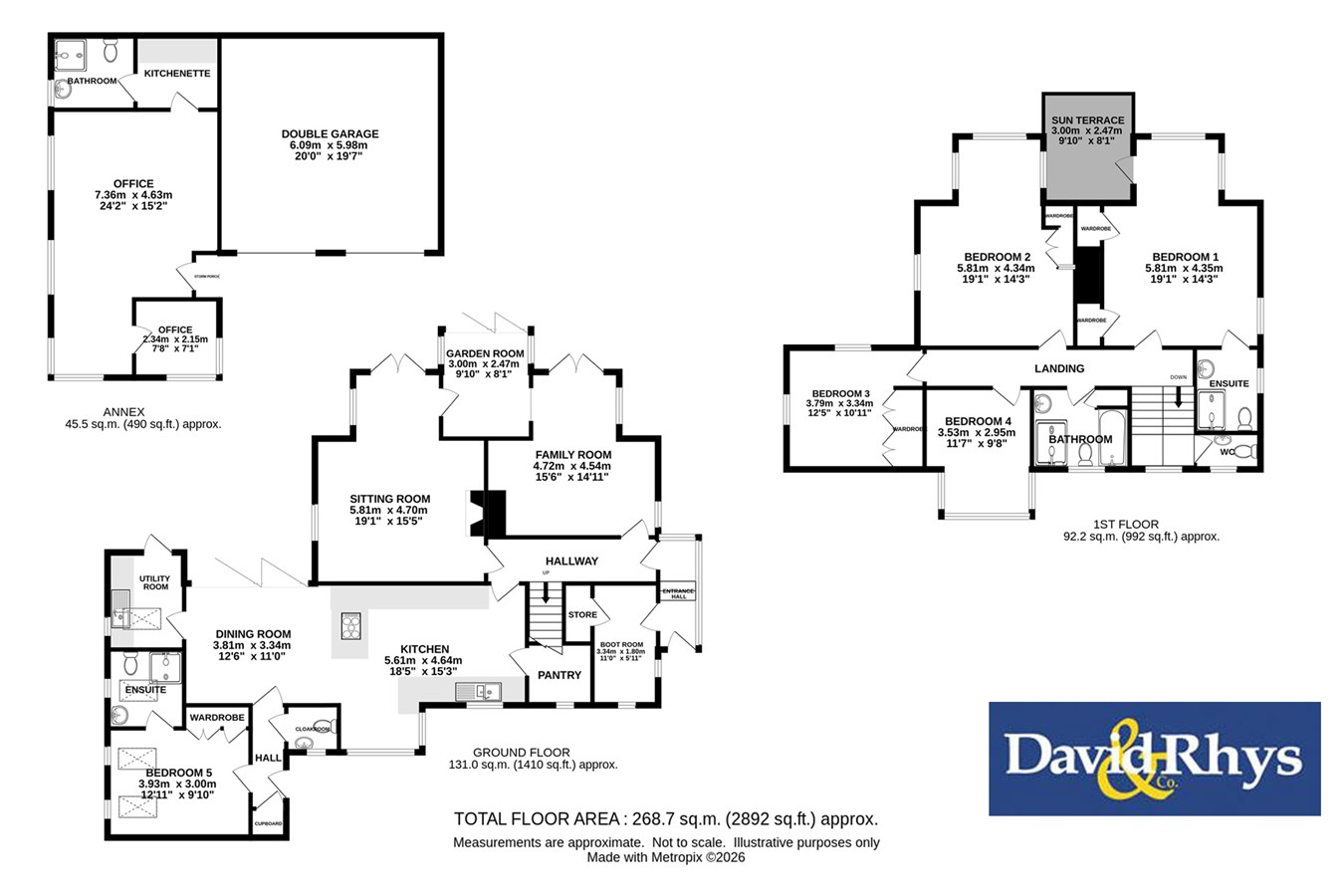 Internally much of the accommodation enjoys double aspects and fine views over the landscaped gardens. The flexible, extended and refurbished spaces equates to approximately 3,000 sq ft. The roof was renewed in 2021, the interiors were decorated in 2022 and the annexe was built in 2023