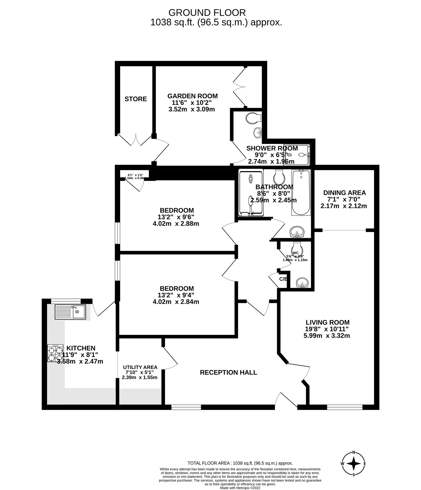 To the front of the building there are TWO ALLOCATED CAR PARKING SPACES and an attractive private entrance with steps leading down to the front door. To the rear there is a private and enclosed courtyard garden which is terraced and well laid out. The lower section is laid to stone cobbles bordered by raised flowerbeds and steps that lead to the top of the garden where there is a lovely terrace, making a pleasant area to sit out in. Outside store, wall lights and useful rear gate. While having its own private entrance and spacious patio garden, there are also shared lawn areas to be enjoyed. The rear walled garden is a sheltered and private area which enjoys a south westerly orientation.
