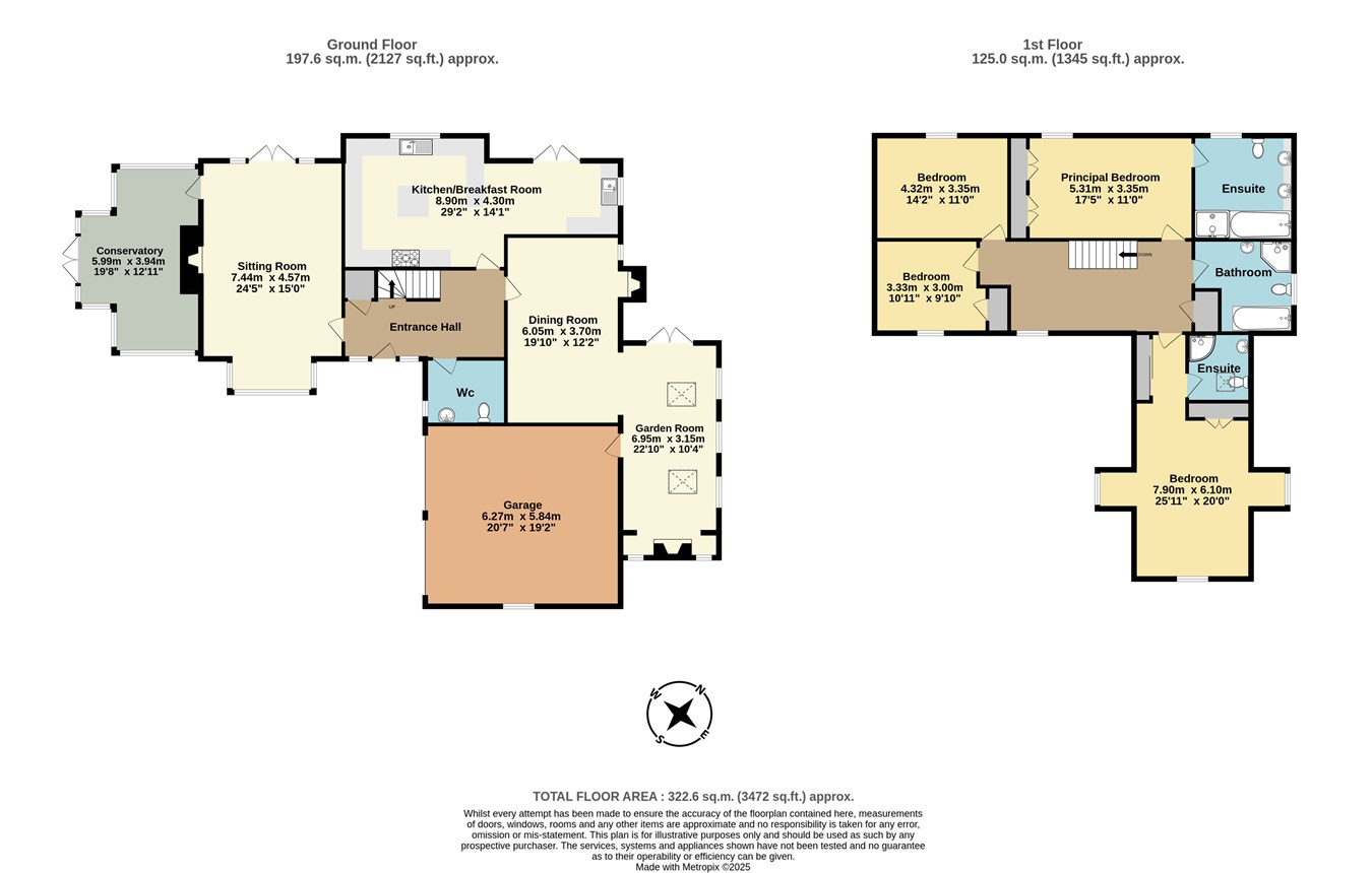 Upstairs, the spacious first-floor landing leads to four well-presented double bedrooms. These include the generous principal bedroom with its built-in wardrobes and en suite bathroom with a separate shower unit. The second bedroom benefits from an en suite shower room, with the first floor also featuring a family bathroom with a separate corner shower unit.