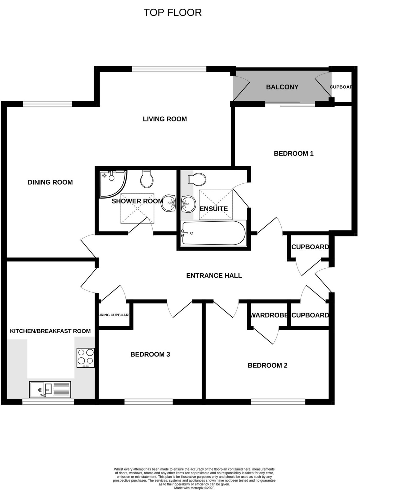 Suite comprising corner shower cubicle with thermostatically controlled shower unit and splash screen doors. Concealed cistern WC. Vanity wash handbasin. Fully tiled walls. Shaver socket. Skylight. Heated towel rail. Extractor fan.