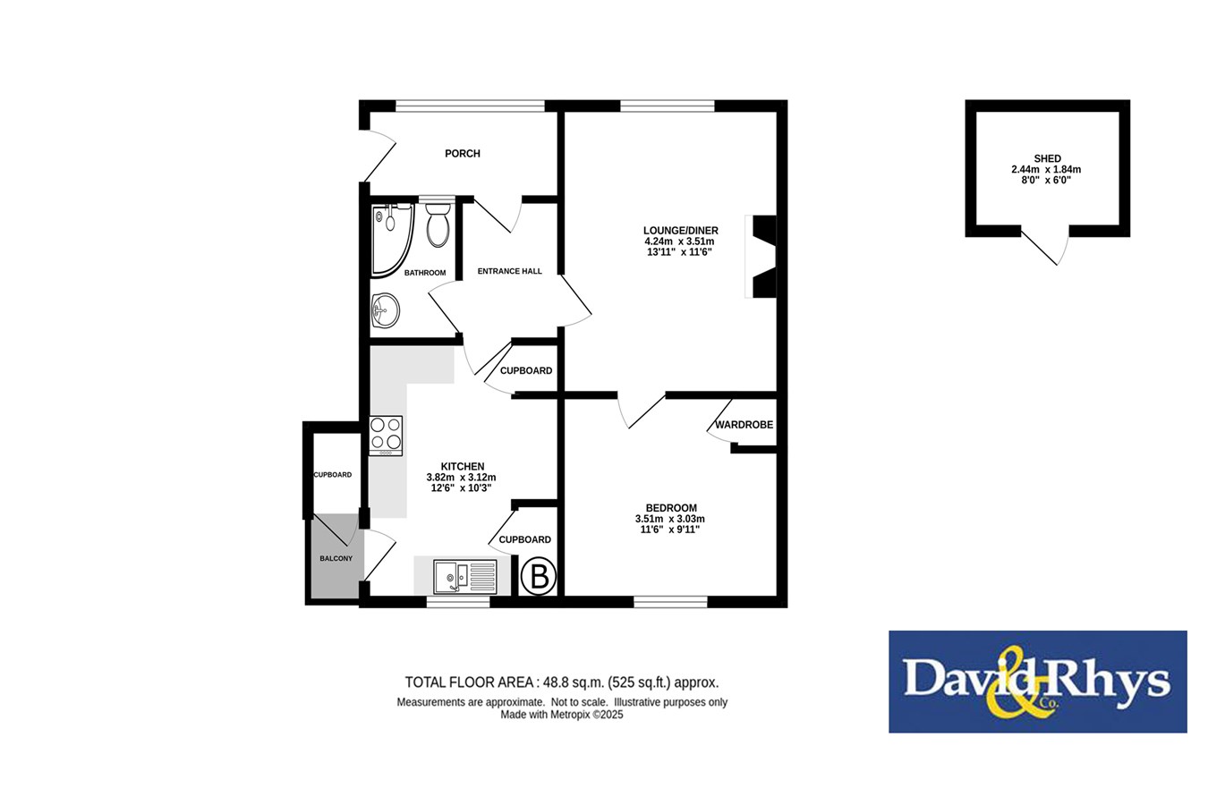 To the left, from the hallway, you have a superb lounge boasting pleasant views and a lovely living flame gas fire making up its focal point. A door leads through to the bedroom. The bedroom is a good size double, built-in wardrobe, rear facing double glazed window and a radiator.