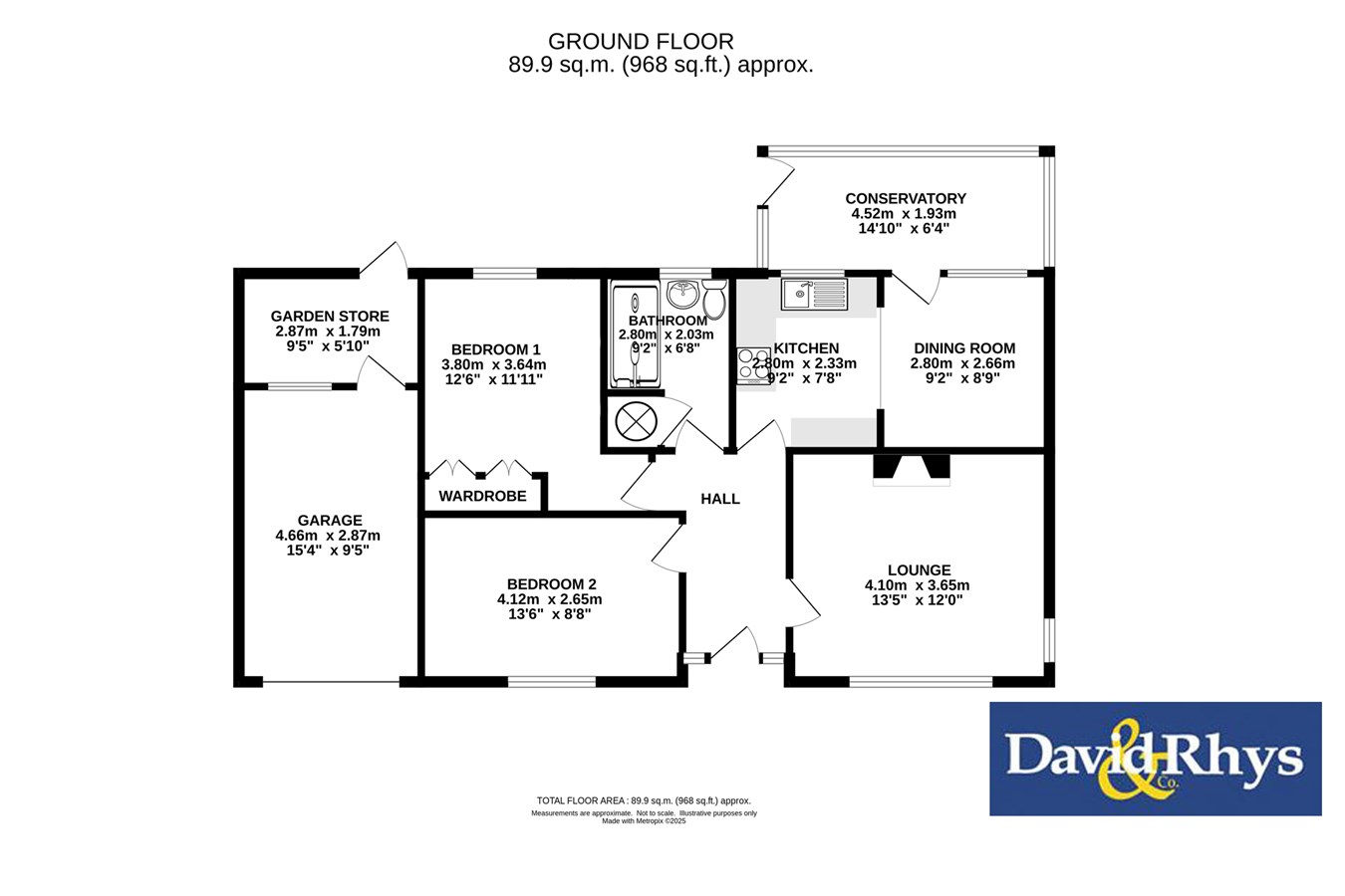 * Conservatory with doors leading onto the rear garden