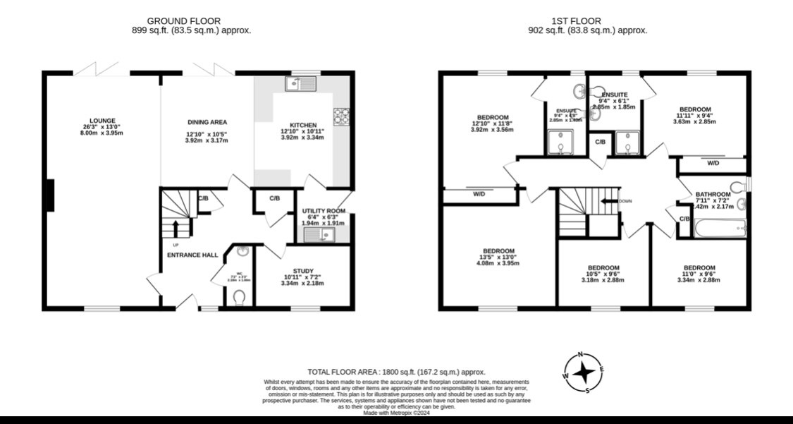 Doors leading to Lounge, Kitchen, Cloakroom and Study